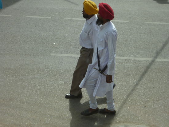 Punjabi Maenner haben alle einen Turban auf und tragen einen Vollbart (sobald es geht). Ich hatte eso einen Anblick eher von Pakistan oder Afganistan erwartet. Aber ich bin ein Fan von den "Punjabi - Dons" wie Matt sie immer nannte. Sie duerfen auch ihren traditionellen Dolch oder Speer ueberall mit hintragen!