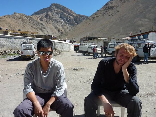Als wir nach einem Jeeptaxi zur Kee Gompa fragten, nannte uns die Besitzerin einen sehr hohen Preis. Also gingen wir selbst zum Taxistand und handelten einen besseren aus.
