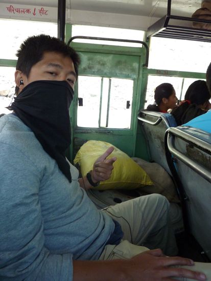 Die "Strasse" war eng wie immer und wir bekamen nicht mal nen Sitzplatz! So blieb uns nichts anderes uebrig als im Gang zu haengen, versuchen keinem der sitzenden Passagiere in den Schoss zu fallen und nicht zu kotzen (man entschuldige den Ausdruck! )