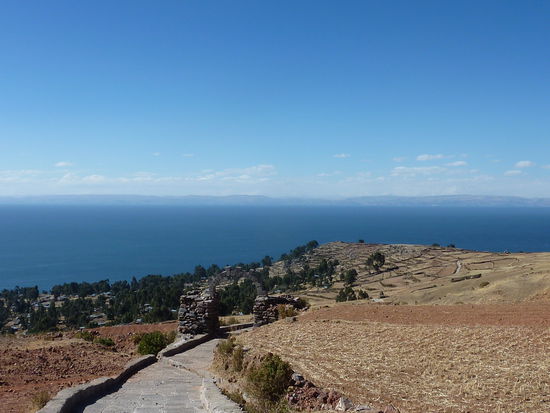 Wir sind ganz alleine auf den Inkaruinen und koennen die ganze Insel ueberblicken.