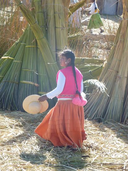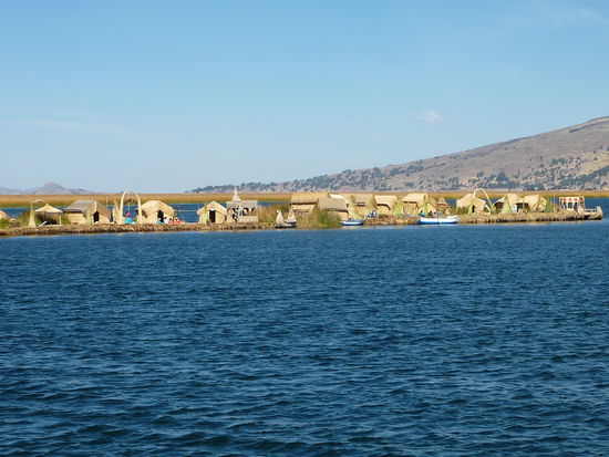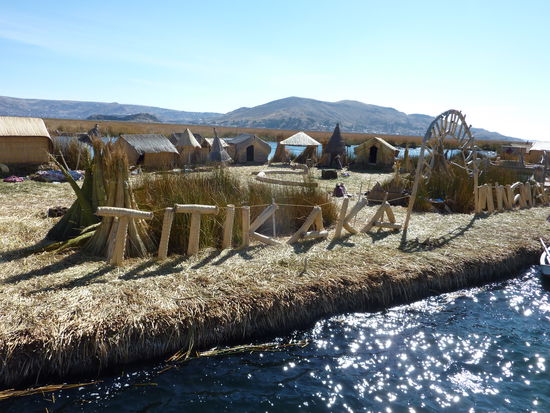 Von denen gibt es mehrere Kolonien auf dem See. Die Inseln werden aus Torfbloecken gebaut, die vertaeut werden. dann kommen mehere Schichten Schilf drauf.