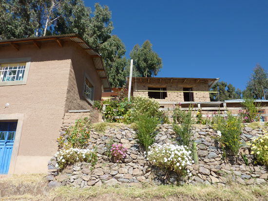 Um die Mittagszeit kommen wir an, werden schon von einer Quechusdame mit Hut in Empfang genommen und finden 15 Soles fuer die Uebernachtung inkl. drei Mahlzeiten angemessen. Also steigen wir mit ihr ins Dorf hoch.