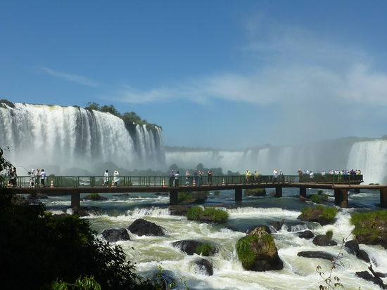 Die Iguazufaelle haben nicht, wie die Niagarafaelle eine Stufe, sondern fallen von Level zu Level.