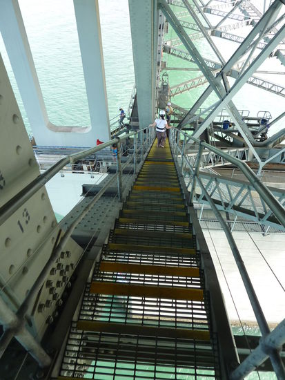 Auf die Harbour Bridge sind wir auch gewandert. Gleich 4 Leute unserer Gruppe haben sich dazu entschlossen, gleich mal von dort Aus Bungee zu springen! Ich sag nur, fuer mich war's schon genug Adrenalinrausch mich anseilen zu lassen und ueber das Lochgitter auf die bruecke zu spazieren und denen beim Springen zuzuschauen!