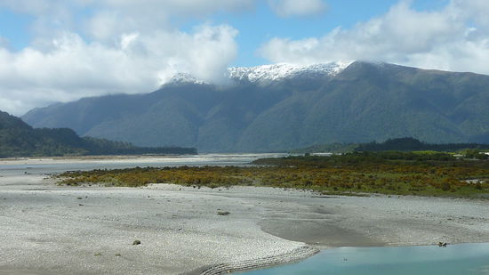 Die Fahrt die Suedkueste runter war, wie ihr sicherlich erraten koennt, durch wunderschoene, neuseelaendische Landschaften! Wir fuhren von der Kueste ueber die Berge, blieben eine Nacht in Wanaka und dann wieder zurueck an die Kueste. Dieser Teil NZ ist einer der wildesten, denn manche Gebiete wurden erst in den 50er Jahren ans Strassennetz angschlossen.