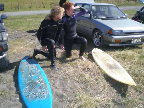 Drew hat uns dann zum Surfen mitgenommen, wobei ich mir die Zeit mit Sam am Strand vertrieben hab und Stephan unter die Cracks gegangen ist....