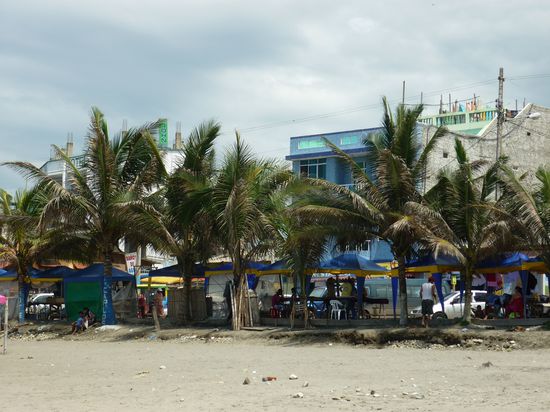 Nach 3 wunderschönen Tagen in Puerto Lopez sind wir weiter nach Canoa gefahren. Das ist auch ein weiteres nettes, kleines Küstendorf. Jetzt hab ich auch mit eigenen Augen gesehen, dass Bananen und Garnelen wichtige Exportgüter für Ecuador sind. Wir sind an zahlreichen riesigen Bananenplantagen und Garnelenzuchtbecken vorbeigefahren. Außerdem haben wir uns acht Tage lang fast ausschließlich von Fisch ernährt. Einmal haben wir sogar morgens zum Frühstück Fischsuppe gegessen.