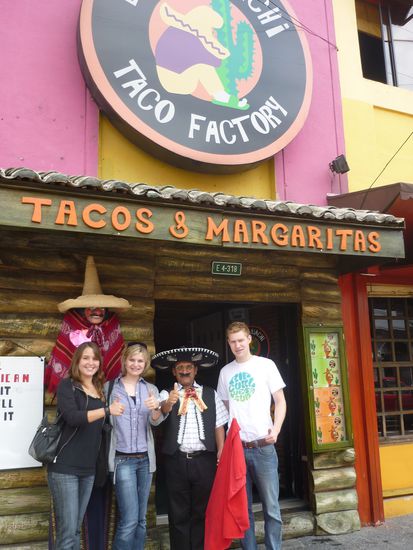 Am Donnerstagmittag haben wir in einem mexikanischen Restaurant gegessen. Vor dem Restaurant stand ein Mexicaner der uns freundlich dazu eingeladen hat.