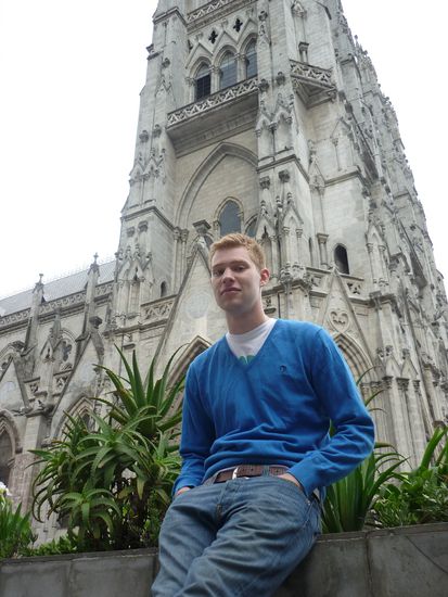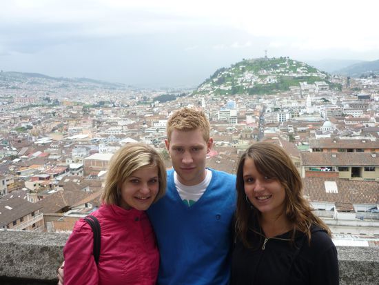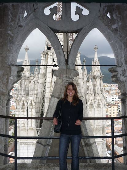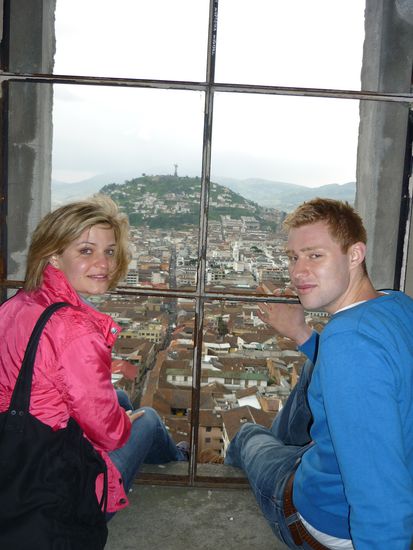 Danach sind wir in die Altstadt gefahren und haben die Basilika besichtigt. Sie besitzt die höchsten Kirchtürme Südamerikas (140 m), die zudem über klapprige und teilweise ungesicherte Leitern bis ganz nach oben bestiegen werden können. Von dort hat man eine schöne Aussicht auf die Altstadt und den Panecillo.