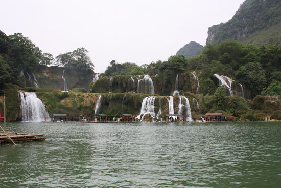 Natürlich sind auch die Detian Wasserfälle typisch chinesisch nahezu gerfekt touristisch erschlossen. So erwartete uns dort ein riesen Spektakel rund um die Wasserfälle.