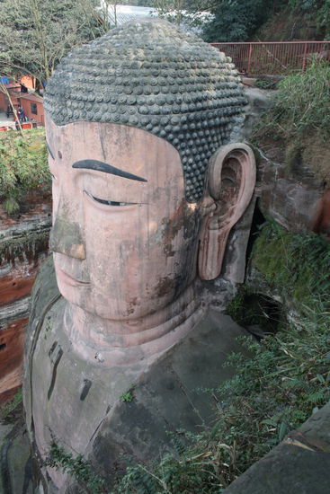 Am Zusammenfluss des Min He' und des DaDu He' inmitten von mit Bambus überzogenen Huegeln liegt eins der ältesten buddhistischen Zentren Chinas. Die buddhistischen Mönche bauten direkt an den Schnittpunkt der beiden Flüsse eine malerische Klosteranlage in und auf die Klippen. Die parkähnliche Anlage wird ganz klar vom größten sitztenden Buddha der Welt dominiert.
