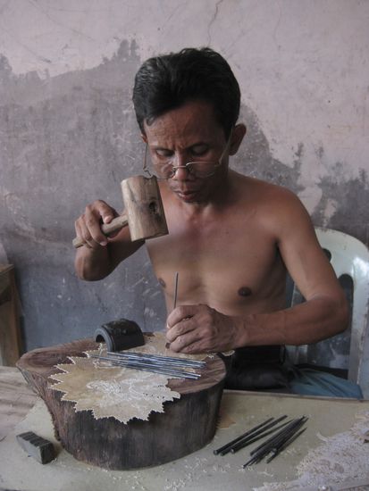 Die alte Stadt ist auch heute noch voller kulturellem Leben und die alten Traditionen Javas werden hier noch gehegt und gepflegt. Im Stadtzentrum ist noch heute der Sultan und seine Familie zu hause. Rund um den Palast ist das sogenannte Kraton. Dabei handelt es sich um eine fast autarke Gemeinde innerhalb der Stadt mit ihren eigen Regeln, z.B. niemand muss hier Steuern zahelen. Hier dürfen aber nur alteingesessene Familien aus Yogyakarta und Java wohnen, die alle mehr oder minder für die Sultansfamilie arbeiten. Wir verbringen einen sehr netten Nachmittag bei der Großfamilie die die traditionellen Lederpuppen herstellt.
