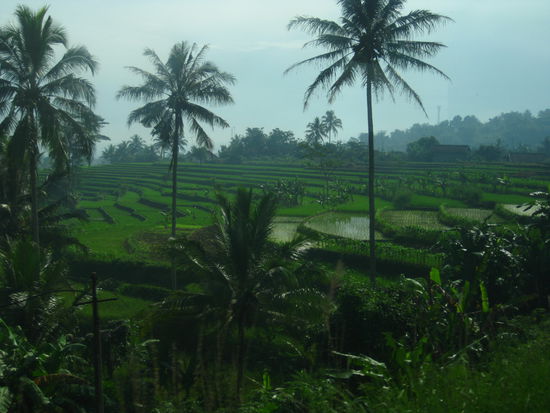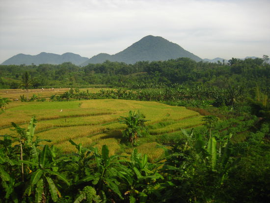 Die Zugfahrt von Bandung nach Yogyakarta ist für uns eine der schönsten die wir je gemacht haben. Zuerst geht es mitten durch die erloschenen Vulkane und den Dschungel. Erst nach und nach öffnet sich das Land immer weiter und wir fahren immer häufiger an Siedlungen vorbei und die Reisterrassen und Bananenpflanzungen nehmen mehr und mehr zu.