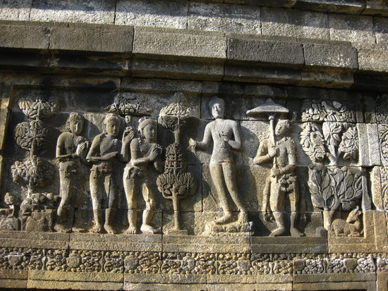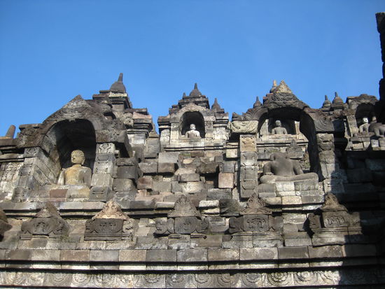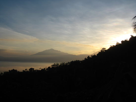 Doch die wahrscheinlich berühmteste Sehenswürdigkeit Yogyakartas ist Borobudur. Der 1000 jährige Tempel ist nicht nur alt, sondern ist auch noch der größte buddhistische Tempel der Welt. Die Anlage wurde Anfang des 19. Jahrhunderts von einem Holländer mitten im Dschungel wiederentdeckt und hat sich seither zu einem wahren Besuchermagneten entwickelt. Um unseren Besuch wenigstens etwas geniessen zu können brechen wir schon um halb vier mit dem Roller in Yogyakarta auf um die knapp 40km Strecke noch vor dem Sonnenaufgang hinter uns zu bringen. Der Sonneaufgang war dann zwar nicht so spektakulär wie wir ihn uns erhofft hatten, aber dafür sind wir wenigstens die erste Stunde noch relativ ungestört.
