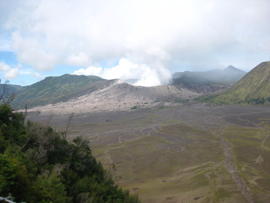 Unsere letzte Station auf Java führt uns nochmal auf einem Vulkan, dem Bromo. Dieser aktive Vulkan liegt inmitten des riesigen Kraters des vorgeschichtlichem Tengger Vulkans. Neben dem Bromo, sind innerhalb des 10km breiten Kraters auch noch der Batok und der Kursi, welche aber beide nicht mehr aktiv sind.