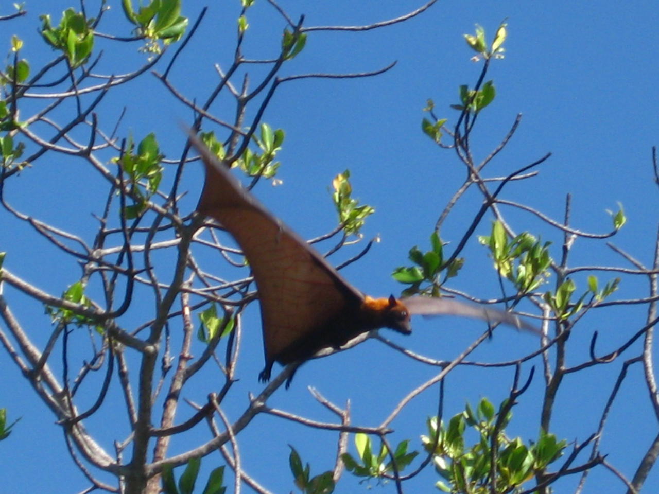 Wir fahren mit einem kleinen Fischerboot raus zu den Inseln. Neben der aussergewöhnlichen Unterwasserwelt beheimatet der Nationalpark noch tausende von Flughunden. Diese erinnern doch schon sehr stark an kleine Vampire auch wenn sie aus der Nähe doch irgendwie niedlich ausschauen. Aber ein Schauern läuft uns schon über den Rücken als sich hunderte von ihnen mit lauten Kreischen direkt vor uns in dei Lüfte schwingen.