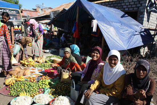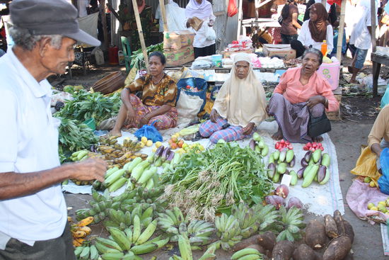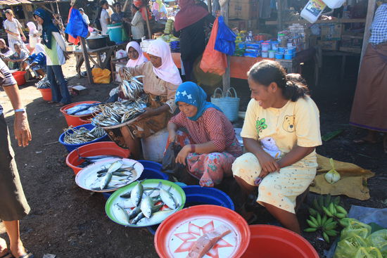 Da wir aber erfahren das am nächsten Tag großer Markttag ist entschliessen wir uns noch eine Nacht länger zu bleiben. Das hat sich auf jeden Fall gelohnt. Der große Markt begrüßt uns schon aus der Ferne durch das laute Geschrei der Händler und der Kunden die um die Preise lautstark feilschen. Von überall aus Adonara und selbst von den anderen Inseln des Solor Archipels sind die Frauen mit ihren selbsterzeugten Produkten gekommen und bieten diese nun feil. Wir schlendern zwischen all dem tropischen Gemüsen und Obst umher und beim Anblick des fangfrischen Fisches läuft uns das Wasser im Munde zusammen.