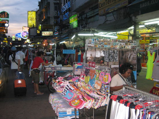 Da wir schonmal hier waren machen wir nicht all zu viel. Wir gehen auf uns bis dato unbekannte Straßenmärkte inmitten der Metropole um unseren mittlerweile stark dezermierten Klamottenbestände wieder etwas aufzubessern. Ansonsten geniessen wir die Atmosphäre der nächtlichen Kao San Road. Die Spiele der WM werden natürlich auch hier in jeder Bar und Straßenecke übertragen und so treffen wir auf Fans aus allen Ecken der Welt. So beenden wir unseren ersten Thailandaufenhalt unserer Reise gebührend mit einem Bucket Sang Som Whiskey Cola auf der total überfüllten Kao San Road bei Nacht.