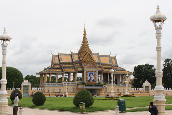 Wir erkunden die Stadt auf den Fahrrad und an jeder Straßenecke kann man erkennen das Phnom Penh nicht nur das wirtschaftliche sondern auch das spirituelle Zentrum Kambodschas ist. Wir passieren viele prachtvolle Wats (Klöster) und die Mönche in ihrem orange farbenen Gewändern sind überall anzutreffen. Natürlich ist der Königspalast mit seinen vielen Gebäuden am prachtvoll angelegtem Ufer des Mekong das Highlight in der City.