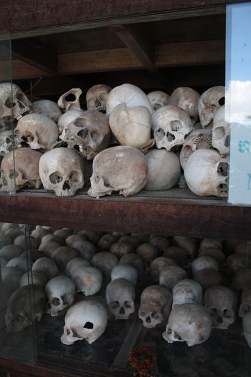 In und rund um Phnom Penh haben die Roten Khmer natürlich während ihres Regimes ohne Ende gewütet. Eine Schule wurde in das berüchtigte S-21 Gefängnis umgewandelt. Hier wurden die Gefangen bestialisch gefoltert und dann schliesslich zu den Killing Fields nach Choeung Ek gebracht. Dort wurden sie dann brutal abgeschlachtet um Munition zu sparen. Die Leichen wurden dann in einem der 128 Massengräbern verschart. Wir sind absolut fassungslos beim Anblick dieses Ort des Grauens mit den Gruben der ehemaligen Massengräber und durch die gläserne Gedächtnisstupa in welcher die Knochen der über 17000 Toten einen letzte Ruhestätte gefunden haben. Ich kann es beim besten Willen nicht verstehen warum wir in der Schule nie etwas von dieser absolut grausamen und menschenverachtenden Schreckensherrschaft erfahren haben. Vielleicht waren die Roten Khmer ja auch einfach zu weit von Europa entfernt, oder hier gab es halt für den Westen nichts zu ergattern.