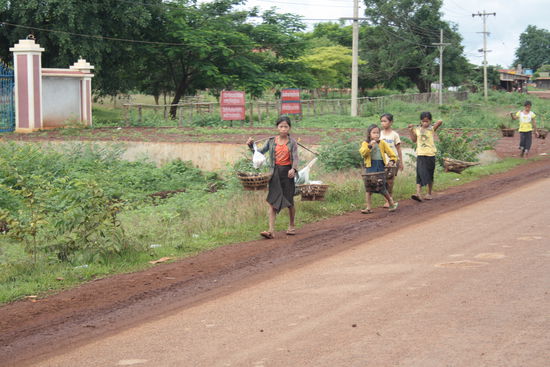 Da wir nur eine recht ungenaue Karte haben auf der nur eine Straße hier eingezeichnet ist , sind wir schon etwas stutzig als wir die ersten Abzweigungen passieren. Aber meistens handelt es sich bei den abzweigenden Straßen um kleine Feldwege und so folgen wir einfach weiter der Hauptstraße. Am frühen Nachmittag wird diese dann aber auch immer schlechter und als wir ein Dorf passieren fragen wir sicherheitshalber lieber nochmal nach dem Weg. Die Verständigung ist jedoch alles andere als leicht, die von einem Minderheiten Volksstamm abstammenden Bewohner sind extrem schüchtern, aber sie zeigen uns die Richtung. So folgen wir weiterhin der nun mehr an einen Off Road Trek erinnernde Straße. Als es zu allen Übel auch noch anfängt zu regnen verwandelt sich die Straße in eine total glitschige und von kleinen Wasserläufen ausgespülte Piste. Zweimal rutschen wir im tiefen Schlamm weg und werden so richtig schön dreckig, aber passiert ist uns nichts.