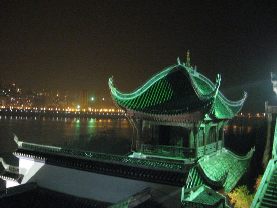 Da wir erst am Abend in Chongqing abgelegt sind, konnten wir noch einmal die fulminante Lichtshow der Metropole bewundern ehe wir langsam die riesige Stadt verlassen haben.