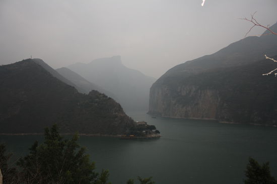 Der 3. Tag beginnt, nachdem wir in der Nacht noch ein Stück weiter geschippert sind, wieder mit einem Landgang. Diesesmal erkunden wir die Weiße Königsstadt nahe Fengjie. Nach dem Aufstauen des Yangtze durch den 3 Schluchten Staudamm liegt diese nun auf der Spitze einer runden kegelförmigen Insel. Die alten Gebäude und die vielen kleinen chinesischen Gärten ergänzen sich zu einer Harmonie, die durch die Aussicht, die diesesmal nicht vom Nebel verhangen ist, fast vollkommen erscheint. Von hier oben haben wir einen grandiosen Blick auf die erste der drei Schluchten, die Qutang Schlucht.