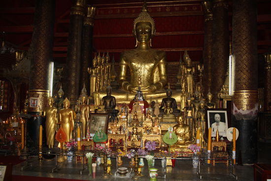 Auf unseren Weg in den Norden Laos kommen wir natürlich nicht an der alten Königsstadt Luang Prabang vorbei. Etwa genau im Zentrum von Nordlaos am Mekong und Nam Khan gelegen zeugen die vielen goldenen Wats und buddhistischen Klöster von der einstigen Stellung der Stadt. Die Pracht dieser Anlagen ist nahezu unvorstellbar und das obwohl sämtliche Klöster heute noch von hunderten Mönchen bewohnt werden. Die Mönche jeden Alters, in ihren leuchtend orangen Gewändern gehöhren einfach zum alltäglichen Leben in Luang Prabangs. Jeden Früh im Morgengrauen zeigen die Bewohner Luang Prabangs den in einer Prozession umherziehenden Mönchen mit Essensspenden ihren Respekt. Dieses uralte Ritual in aller Stille aus der Ferne zu beobachten ist nochmal ein absolutes Highlight unseres Aufenhaltes in Laos.