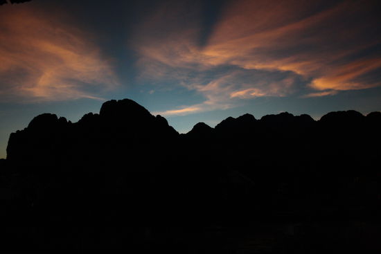Die kleine Stadt liegt am Ufer des Nam Xong Flußes der sich hier mitten durch die leuchtend grünen Reisfelder schlängelt. Rund um die Stadt erheben sich zerklüftete Kartsberge die zum Großteil mit dichtem Regenwald bewachsen sind. Am Ufer in einem kleinen Restaurant zu sitzen und den Sonnenuntergang vor dieser tollen Kulisse zu betrachten war alleine schon das kommen wert.