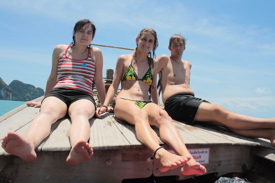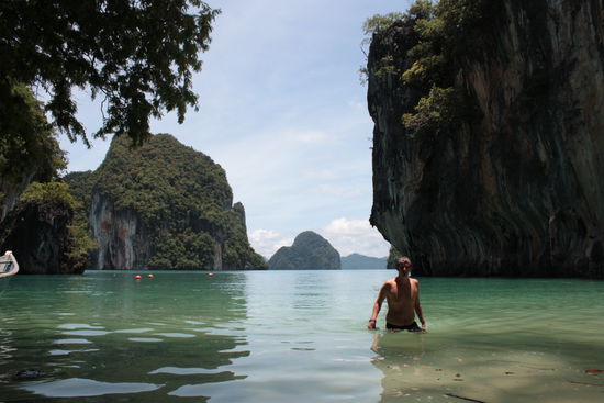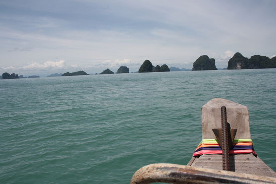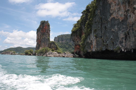 Am nächsten Tag geht es dann auf einen Tagesausflug mit dem Boot zu 4 in der Nähe liegenden kleinen Inseln. Der Trip entwickelt sich echt zu einem Highlight. Die Fahrt durch die Andaman See mit ihren unzähligen Felsnadeln ist schon wunderschön.