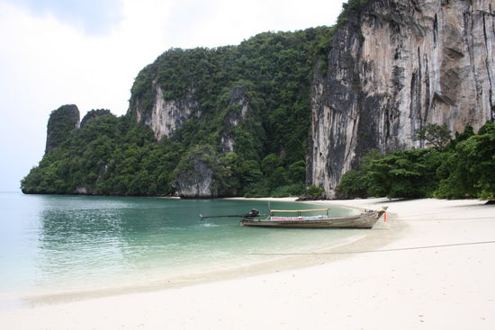 Schon am nächsten Tag fahren wir mit einem der unzähligen Wassertaxis die hier am Strand liegen zur Halbinsel Railey. Da die Halbinsel nur per Boot zu erreichen ist, ist es am malerischen Phra Nang Strand auch recht einsam. Wir relaxen erstmal etwas am Strand ehe wir ins Inselinnere aufbrechen.