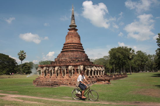 Es geht noch nördlicher zur nächsten historischen Stätte, dem Geschichtspark von Sukhotai einer der bedeutensten buddhistischen Stätten von Asien. Auch der gehört zur Unesco Weltkulturerbe und ist um einiges grösser und besser erhalten als die Tempel von Ayutthaya. Hier geht es mit dem Radel auf Entdeckungstour bei ca.40 Grad und einer ernormen Luftfeuchtigkeit, diese Regenzeit ist so was von anstrengend, Schweiss,Schweiss!!
