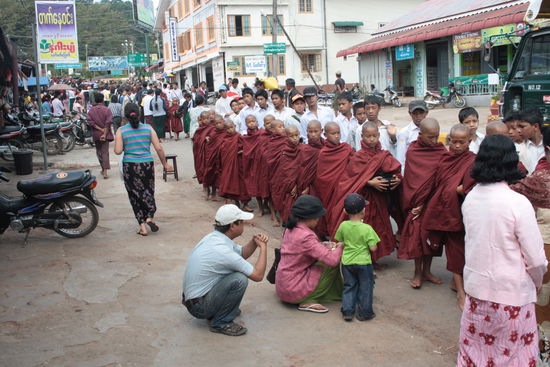 Kalaw ist ein kleiner Ort in den Bergen von Burma, hier war gerade eine Zerremonie wo die Mönche Essen sammeln gehen, das war sehr eindrücklich wie diese Mönche vom Volk verehrt werden.