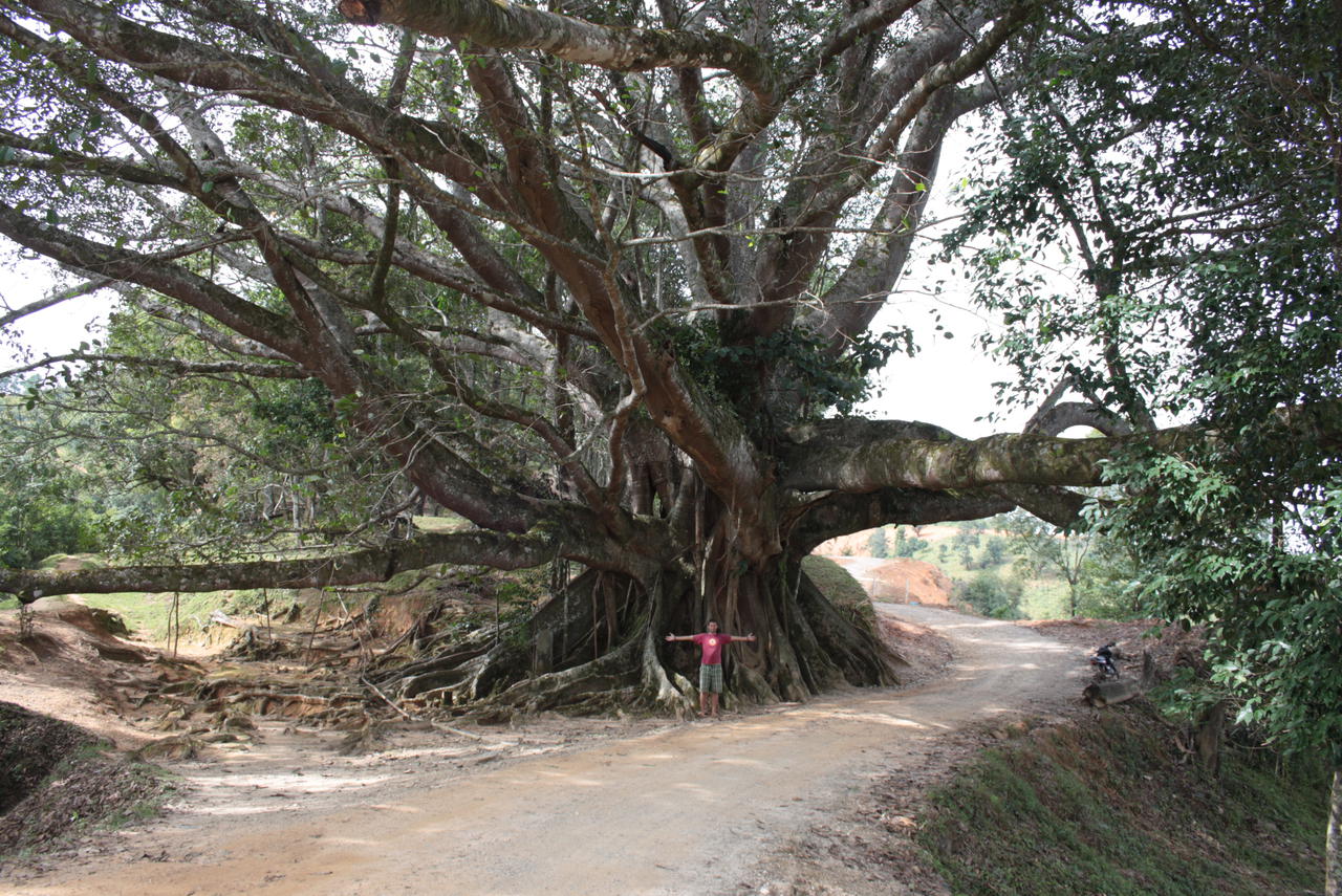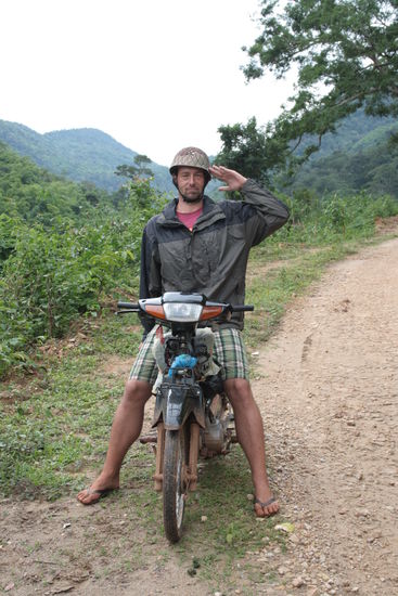 Wir schwingen uns auf ein altes Motorrad und machen uns von Hsipaw auf den Weg nach Namhsan auf 1600Metern. Da es die letzten Tage immer wider mal regnete und es das auch während unserer fahrt tut, verwandelte sich die holprige Naturstrasse in eine rutschige Schlammstrasse. Eine riesen Herausfolderung für Kapitän Chris. Es ging an Flüssen entlang, durch kleine abgelegene Dörfer,durch Täler und über Hügel an Teeplantagen vorbei, bis wir nach Stunden endlich das schöne Namhsan erreichten und das mit flachgedrückten Ärschern. Hier schauten wir ein paar Tempel an und beobachteten das Treiben im Dorf, wo fleissig Tee getrocknet wird. Wegen dem schlechten Wetter blieben wir aber nur einen Tag hier oben.