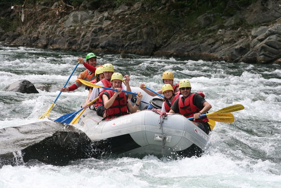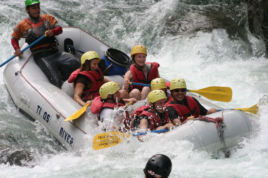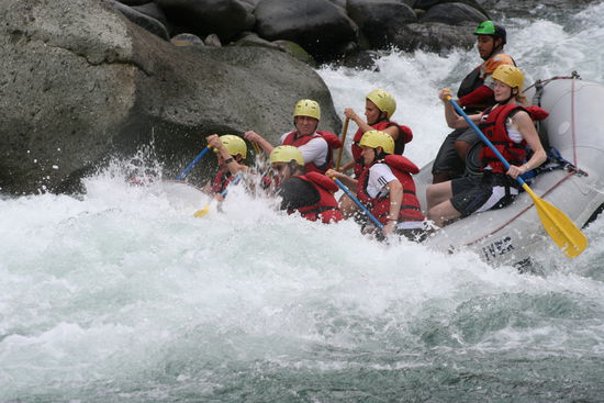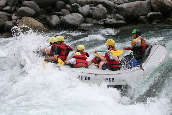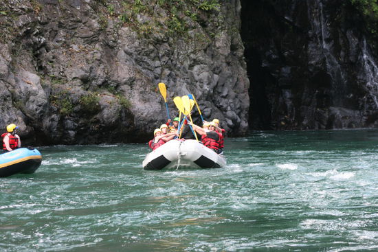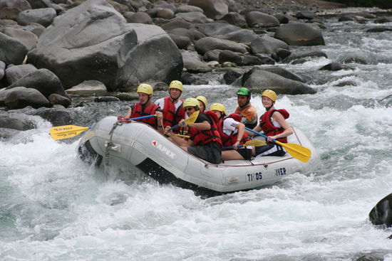 Beim Rafting werden die Stromschnellen klassifiziert, von I (Kindergeburtstag im Barbieland) bis VI (sprich dein letztes Gebet). An unserem Abschnitt geht es bis IV (Leckst mich am Arsch) - wie uns der Tourveranstalter versichert hat: Perfekt für Anfänger!