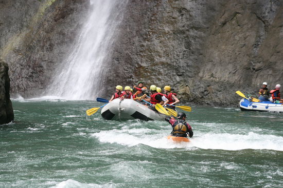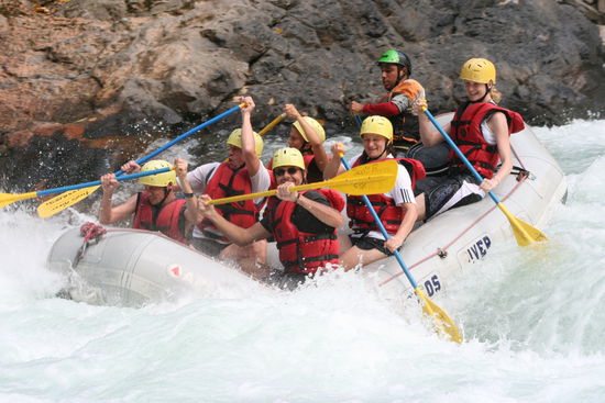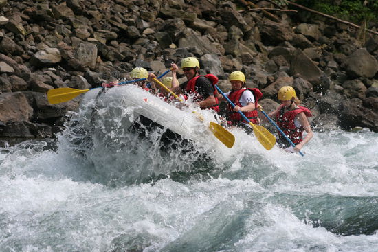 Manchmal ist uns ganz schön der Arsch gegangen. Wenn Hi5 zum Beispiel gesagt hat:"Achtung, nächste Stromschnelle IV, heißt Friedhof. Ist sehr gefährlich, bitte hier nicht aussteigen! Also, Konzentration und Position halten!"