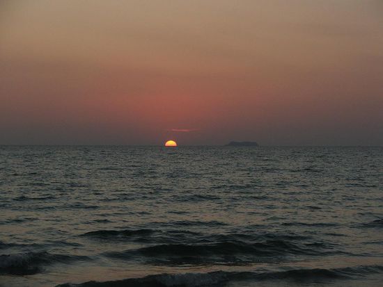 Dort angekommen,setzen wir uns an einen kleinen kiosk und schluerfen gemuetlich ein Chang(Bier) und schauen dem regen treiben auf der strasse zu.Wenn man dann sieht wie die Thais zu dritt oder viert auf dem Moped fahren merkt man erst wie entspannt hier alles ist. So jtzt gehn wir an den strand den sonnenuntergang geniessen
