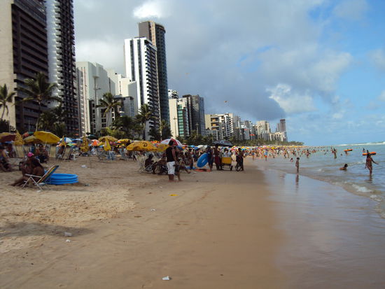 Es ist Sonntag, mein letzter Tag. Am Sonntag ist jeweils Strandparty. Ich habe mir unter Party immer Musik und Tanz vorgestellt. Diverse Sonntage habe ich schon am Strand verbracht und nie solches erlebt. Die Brasilianer gehen an den Strand und trinken Bier, entspannen sich, spielen Fussball oder Volleyball und die Männer pirschen sich an die Frauen heran. Bei uns würde man das nicht Party nennen. Der Strand von Boa Viagem in Recife ist dann aber schon recht schmutzig. Voller Algen und Abfall. Und als ich so im Meer wate, sehe ich eine Riesenmeeresschildkröte, die offenbar Tod an den Strand gespühlt wurde. Aus ihrem Mund tropft noch eine rote Flüssigkeit. Wie alt mag sie wohl gewesen sein? Da liegt sie nun. Ihr Anblick macht mich traurig. So ein mächtiges, schönes Tier.