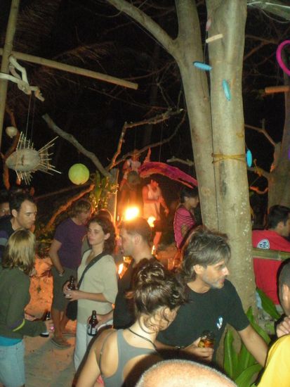 Und die Party war echt klasse, in einer ansonsten leeren Bucht nur aus ein paar Bambusstäben zusammen geschustert tut sich da plötzlich ein wirklich bemerkenswerter Partyplatz auf. Mittlerweile kennt man hier ja dann auch ein paar Leute, so daß ich dort viele bekannte Gesichter gesehen habe. Sehr klasse!