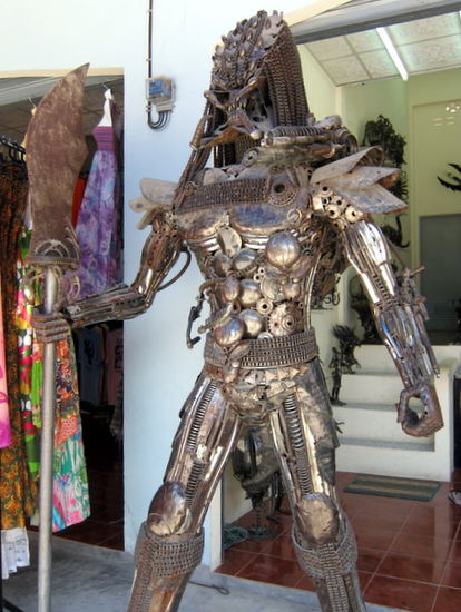 An einem Tag konnten wir uns doch von unseren gemütlichen Strandliegen lösen und machten eine Rollertour um die halbe Insel. Wir fuhren als Erstes in den Norden nach Bo Phut und Fisherman's Village. Die namengebenden Fischer gibt es heute leider nicht mehr. Dafür sorgen die Restaurants und Geschäfte in den restaurierten Holzladenfronten für ein einzigartiges Flair. Anschliessend fuhren wir zum Big Buddha, welcher hoch oben über die Bucht wacht; die Hauptsehenswürdigkeit der Insel. Vor dem Tempel haben sich zahlreiche Souvenirläden angesiedelt, unter anderem auch ein Laden der Skulpturen von H.R. Giger verkauft. Das ganze sieht vor der Tempelkulisse sehr komisch aus...