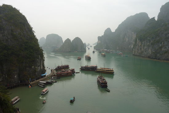 Am ersten Tag tuckerten wir als eine der "Perlen" an der Schnur zu einer Hoehle, die schon beeindruckend gross, aber fuer den Laien eben doch einfach nur eine Tropfsteinhoehle ist. Die Vietnamesen haetten sie gerne zu einem der Weltwunder gewaehlt, weshalb sie unglaubliche Menschenmassen hinkarren. Es riecht dann in der ganzen Bucht wie in Hanoi zur rush-hour.