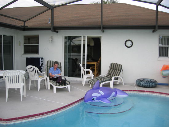 Ulrike meint dann vor einem zu überschlagenen Wasser: 'na Dir macht das ja nichts aus' und ich versenke natürlich prompt den Ball. Überhaupt ist dieses Loch dann mein einziges zu streichendes - einen Ball versenkt und einen nicht mehr gefunden. Gegen 14.30 Uhr sind wir dann fertig und hätten - wie wir erst später bemerken - unsere 2 Lunchgutscheine 'abessen' können, aber wir fahren zum Publix und kaufen dort unseren Wein, da man dort auch die Einstufung in trocken etc ausgezeichnet hat. Unseren Haupteinkauf wollen wir jedoch im Winn Dixie machen, da Ulrike vor der Abreise noch unsere alte Kundenkarte vom WinnDixie gefunden hat. Unser Großeinkauf (Steaks, Alaska Crab Beine, Buttermilch ... Lobster Cake, Shrimps) mit Endsumme 92 Dollar weist einen 'Sparbetrag' von 19 Dollar aus! Ist das Leben doch preiswert!! Leider war die Riesenplatter Sushi von heute morgen schon verkauft, aber wir hätten sie bei 80° F auch nicht im Auto lassen können.