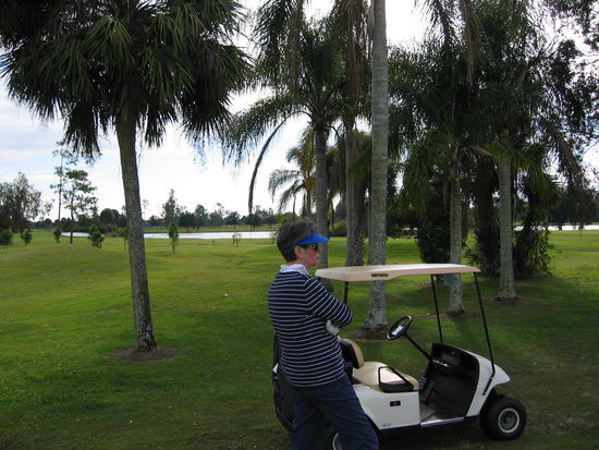 Der eine (Joe) war ein Longhitter mit 50% Chance, das Fairway zu treffen. Da konnte ich gut mithalten und mit meinen bescheidenen Längen alle (d.h. alle) Wasser überschlagen, Joe hat 6 Bälle versenkt, der andere (Hank) schien eher ein Neuling zu sein, hatte aber mit Eisen sagenhafte Längen, nur mit den Annäherungsschlägen klappte es nur zufällig mal. Am 16. Loch hatte ich mein Soll erreicht und der Sheriff meinte, dann hätte ich ja aufhören können.