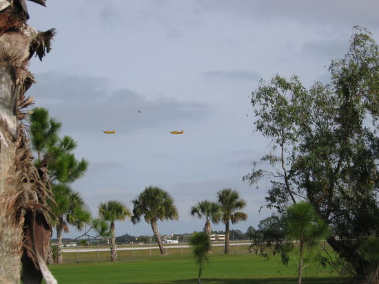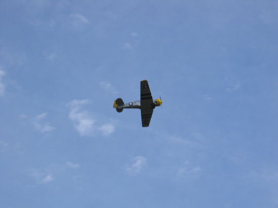Die Warbirds kann man offensichtlich zum Rundflug buchen, denn sie fliegen mehrfach im Verbund über uns eine Runde.