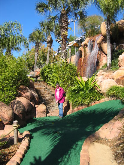 Wir buchen eine Runde und starten an der vermeintlich schwierigeren - ich spiele eins über Par (47 bei Par 46). Eigentlich wollte Ulrike gar nicht spielen, 'es ist so ungemütlich kalt', aber nun will sie eine 2. Runde angehen. Wir löhnen ein update und starten nochmals.