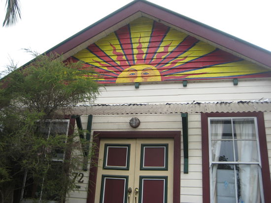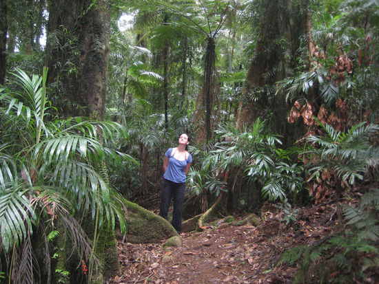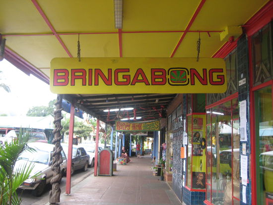 Der dritte Tag unterwegs mit dem guten Jut führte uns in einen unglaublichen Ort. Mitten in Australien abseits von jeglicher Zivilisation befindet sich ein Ort namens Nimbin. Nimbin ist als einziger Ort auf der Karte mit bunten Buchstaben geschrieben allein das ist schon unglaublich Wenn man sich weiter ueber dieses Fleckchen interessiert weiß man auch bald warum/ Nimbin ist bunt!! Bunt, bunter am buntesten...Der Ortsname Nimbin wurde von "Nyimbunje" abgeleitet, dem Namen eines der Stammesältesten der Aborigines vom Stamme der Bundjalung, dem man magische Kräfte nachsagt. Auch heute noch wird seine Grabstätte bei den Nimbin Rocks, mit drei markante Felsen in der Umgebung ("Cathedral", "Needle" und "Thimble") für männliche Initiationsriten aufgesucht. Nimbin war eine verschlafene Stadt, bis 1973 ein Hippie-Festival abgehalten wurde, das Aquarius Festival. Bei dem Fest wurden damals vier Festivalbesucher von der Polizei inhaftiert. In gemeinschaftlichem friedlichen Protest zog die Festgemeinschaft zur Polizeiwache und verlangte deren Freilassung. Daraufhin kapitulierte die Polizei, ließ die Inhaftierten frei und billigte ebenso den Konsum von Marihuana. Viele der damaligen Festivalbesucher blieben ansässig. Zum jährlichen Festival, dem "MardiGrass" (einer ironischen Abwandlung von "Mardi Gras"), kommen bis zu 20.000 Besucher in den Ort. Das Gebiet um "Mount Nardi" ist heute Weltkulturerbe auf Grund der Bestrebungen der Nimbie-Hippies. Es besteht aus nur einer einzigen Straße auf der befinden sich ca 100 kunterbunt bemalte Häuser. Darunter ein spektakulaeres Museum, eine Touristeninfo welche diverse Glaspfeifen verkaufte und uns zu zwei Tracks rieht wovon der eine gesperrt war. eine Parkanlage und eine super coole Kneipe welche schon frueh am morgen so voll war wie in Koeln abends zum Fc spiel Wir vertieben uns die ersten stunden mit staunen ueber diese weltfremde lebenskultur. Schlenderten durch die Hippielaeden, andere gab es dort nicht, und fluechteten vor Magicmushrooms und Cookies verkaufenden Hippies. Nachdem wir ersteinmal genug vom bunten Oertchen hatten beschlossen wir den Track zum Mount Matheson zu machen. Den Jut liesen wir auf einem Parkplatz stehen und starteten den Walk durch den nassen Regenwald. Ich zog mir eben noch schnell eine lange Hose an da ich keine lust auf Mossis, Schlangen oder andere Krabbeltierchen hatte. Es war einer wahrhaftiger Walk mitten durch den Dschungel, der Weg war sehr schmal und der Wald mega dicht bewachsen. Stephan schnappte sich einen Stock und ging vorne weg um Spinnennetze und Schlangen zu entarnen. Wir knipsten Fotos und kamen in unseren Flip Flops gut voran. Irgendwann wurde der wald immer dichter und ueber uns zogen sich die Aeste der Baeume zusammen. Nach gut einer stunde hielten wir vor einem Wegweiser um die naechste Richtung einzuschlagen. Dann schaute ich auf meinen linken Fuss und entdeckte zu meinem grossen Ekel eine schwarze Nacktschnecke am kleinen Zeh (( leicht uebertrieben flehte ich Stephan an sie bitte wegzumachen, der allerdings bekam sie nicht richtig ab und meinte ich solle doch mal den Schuh ausziehen und als ich das tat wurde ich Kreidebleich. An meiner inneren Schuhsohle so wie an meinem Fuss saugten ca. 10 Blutegel!!!! Mir wurde mega schlecht ich geriet sowas von in Panik das ich nur noch schluchzte und wuenschte es waere alles nur ein schlechter Traum- war es aber leider nicht, also musste ich so gut es ging Ruhe bewahren. Stephan setzte mich auf den Wegweiser in der Hoffnung das die Dinger nicht auch an den Baeumen hingen und schnippte einen nach dem anderen von meinen beiden befallenen Fuessen. An den Flipflops liessen sie jedoch nicht locker da hatten sie sich bereits so festgesaugt das ich barfuss blieb waehrend stephan sich nun schnellen schrittes selbst befreite. Als ich nun der Ohnmacht nahe war gab es eine kurze Diskusion ueber den Verbleib der Schuhe, ich beschloss sie einfach stehen zu lassen und so schnell wie nur moeglich hier aus dem Regenwald zufliehen stephan wollte warten bis sie locker lassen das allerdings passierte nicht und da mittlerweile der ganze boden sich schwarz bewegte und ich haette heulen, schreien und wegrennen zugleich koennen, nahm michs schatzi auf dem Ruecken Huckepack und wir flitzten den Weg Zurueck Richtung Auto. Auf dem Weg dahin kahmen uns zwei aeltere Damen entgegen und fragten was unser Problem sei und da wir nicht den englischen Begriff fuer Blutegel wussten erzaehlten wir etwas von beissenden Wuermern D die hatten uns vielleicht schraeg angeschaut DD als Stephan dann auch wieder so 15 an seinen Fuessen hatte lies er mich runter und ich rannte wie von der Tarantel gestochen durch den scheiss Wald!! Jeder Profijogger haette gestaunt nur auf den Zehenspitzen huepfte ich im Eiltempo durch den ach so tollen Regenwald ich sch.. auf jede giftige Schlange oder Spinne die eventuell irgendwo hinter einem Stein auf mich lauerte-nur noch weg!!!
