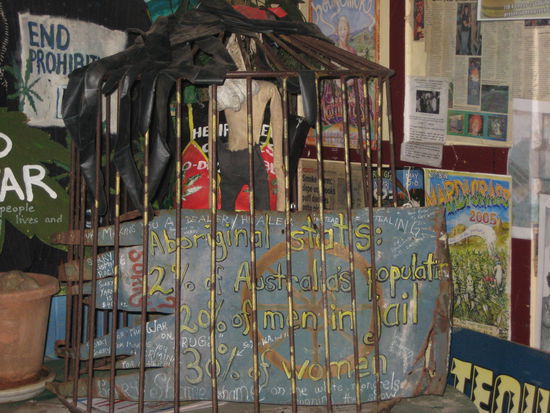 Oben angekommen entledigte ich mich meiner Kleider und schaute ueberall an meinem Koerper nach kleinen zappelnden schwarzen Wuermen. Wir hatten Glueck - ungefaehr nur noch 6 zwischen den Zehen und drei hintereinander an der Achillessehne.. Der Schrock und Ekel sahs tief und wir fuhren schweigend zurueck nach Nimbin. Ich konnte tatsaechlich nicht glauben was wir da erlebt hatten. Wir duschten uns, mit einer Schuessel Wasser, welche wir uns gegenseitig ueber den Kopf schuetteten, mitten in der Parkanlage von Nimbin bis wir von der Infotante als Cleaning People bezeichnet wurden. Zum Ende des schreckenreichen Tages gingen wir ins Pup und nahmen an der Party des Jahres teil Anarchisten Duck spielte als Liveband und alle Bewohner trafen sich um zu tanzen und suesslich riechenden Sachen zurauchen. In Nimbin ist eindeutig die Zeit stehengeblieben und was sich da bot machte alle schlechten Erlebnisse vom Tag weg. Es war so Funny. Bald legten wir uns im jut schlafen und traeumten von unseren Freunden aus dem Regenwald ....