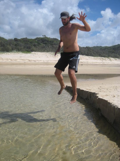 Das Inland von Fraser ist so dicht bewachsen, das man nicht einfach überall mit dem Auto hindurch fahren kann. Wenn wir also nicht beachtet hätten, wann die Flut kommt, wäre sie irgendwann gekommen und wir hätten die Nacht ohne Zelt am Eli Flüsschen verbringen müssen und wären wahrscheinlich von Dingos gefressen worden Dieser Fall ist aber nicht eingetreten und wir schafften es rechtzeitig zurück. Speisten wieder genüsslich Spaghetti, spielten Karten, lernten Tatjana ein wenig deutsch , verräucherten ein Mossi Stäbchen nach dem anderen und gingen nach zuviel Wein schlafen.