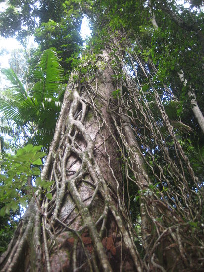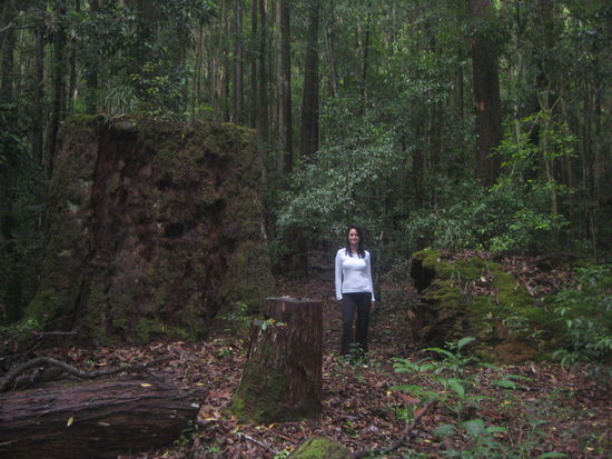 Auf der Fraser-Insel gibt es fast 200 Süßwasserseen verschiedenen Typs, die ein extrem sauberes und klares Wasser aufweisen. Bei Teilen der Seen handelt es sich um solche in einer Schicht aus schwebendem Grundwasser: Wasser, das über einer wasserundurchlässigen Schicht aus Coffee Rock (einem komprimiertem Material aus Sand und organischen Bestandteilen) liegt. Die anderen Seen auf der Fraser-Insel entstanden entweder, wenn Sanddünen Wasserwege blockierten, oder wenn eine Senke darunterliegendes Grundwasser freigab. Der Lake Wabby wird in den nächsten Jahrtausenden von einer Sanddüne verschüttet werden. Und der 4. Tag fuehrte uns zu einem solcher Seen und zwar dem schoensten, den ich je in meinem Leben gesehen habe. Der "Lake McKenzie". Zuerst einmal aber packten wir am fruehen Morgen wieder unsere Zelte zusammen und zogen um. Diesmal fuhren wir tief ins Landesinnere hinein. Die Fahrt dauerte gute 3Stunden ueber Stock und Stein und mir wurde hinten, auf den zweitrangigen Plaetzen ordentlich schlecht . Also tauschte das Schatzi mit mir und ich durfte den Rest der Strecke vorne sitzen Das Inland ist sehr schoen. Jede Menge Ghosttrees, das sind die Eukalyptus Baeume mit der weissen Rinde, Warane, Dingos und ab und zu ein Hauch von Regenwald.Nur Gott sei Dank keine Blutegel .