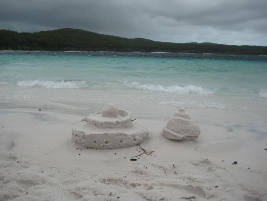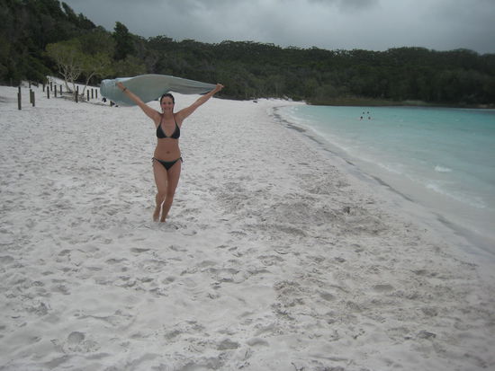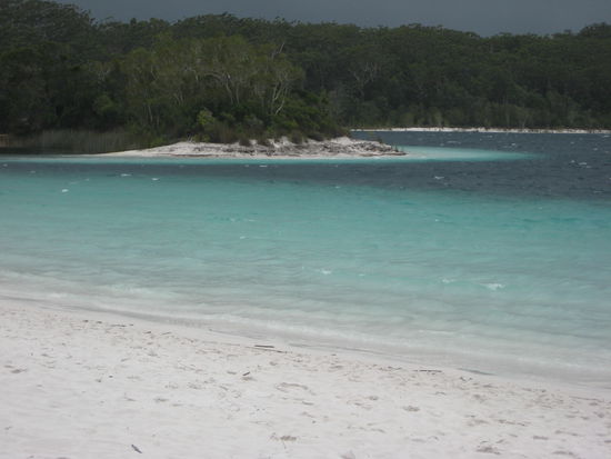 Wir kamen an, bauten, nun schon richtig professionell, unsere Zelte auf und fuhren zum Lake McKenzie. Leider wurde das Wetter immer schlechter und der Lake war nicht in seinervollen Schoenheit zusehen aber immer noch ein Traum!!!!
